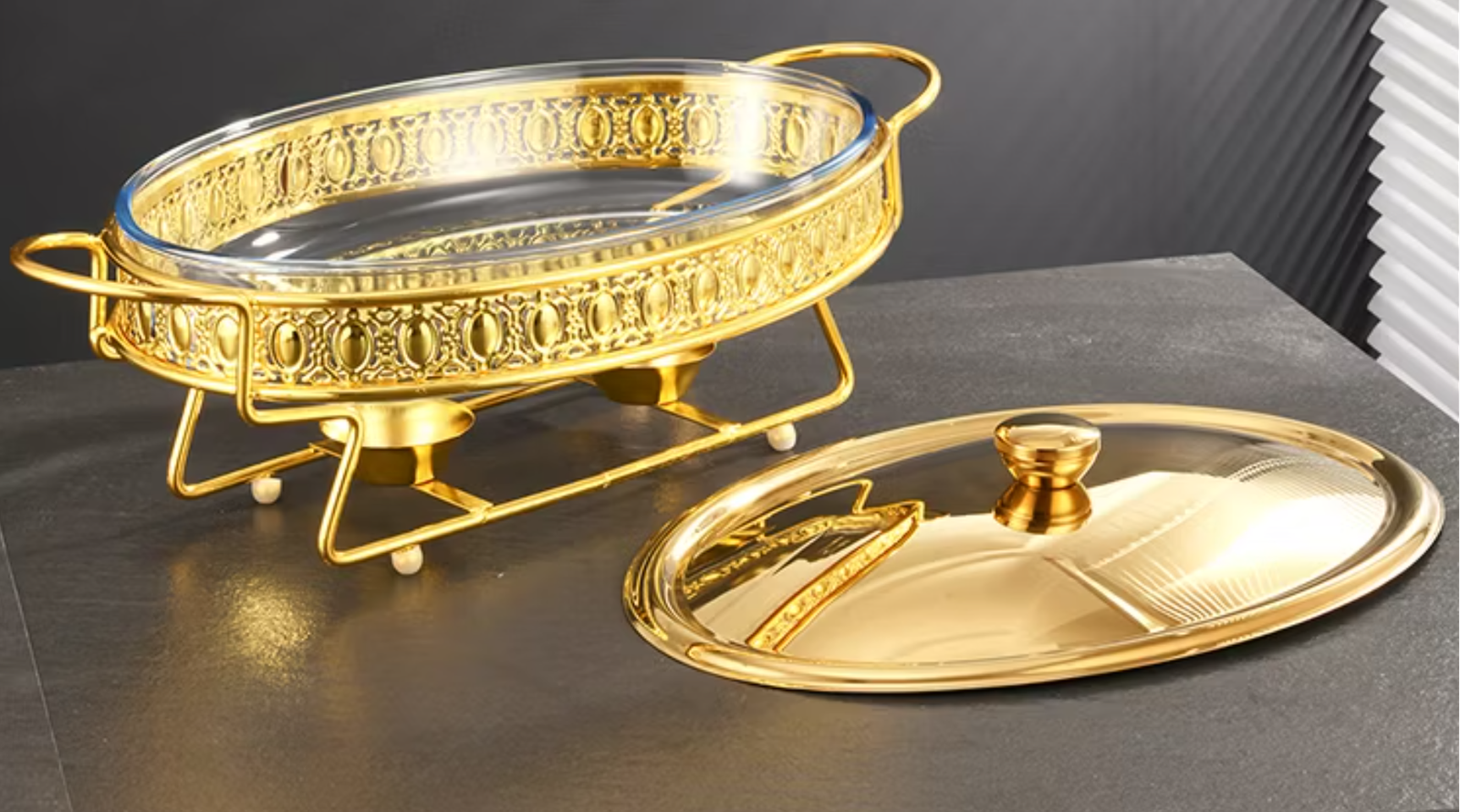 3.0/4.0L Luxury Gold/Silver Egg Shape Buffet Food Warmer Chafing Dish