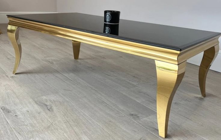 70 inc Black Glass Goldtrim Table With Gold Frame