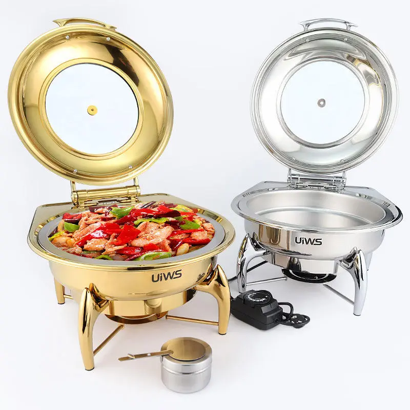 HYDRAULIC ROUND ROLL – TOP CHAFFING DISH WITH GLASS LID ( GOLD/SILVER