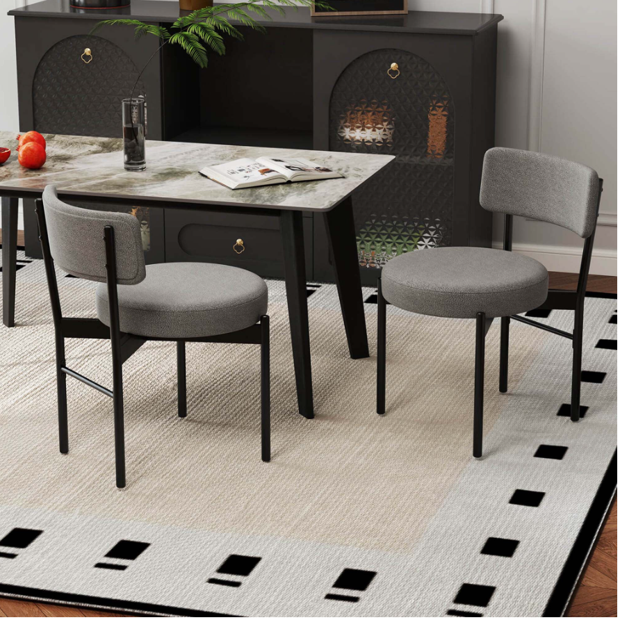 Costway Dining Chair Set of 2 with Curved Backrest Padded Seat & Metal Legs for Dining Room Grey & White
