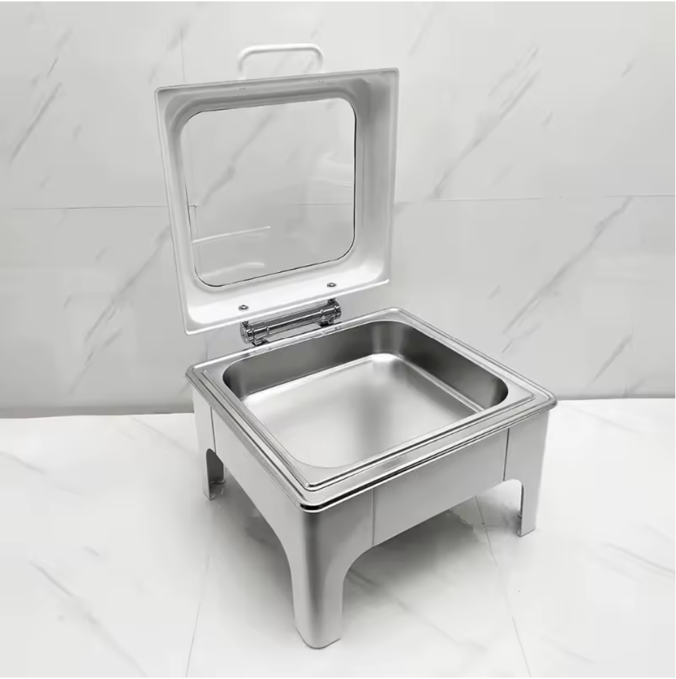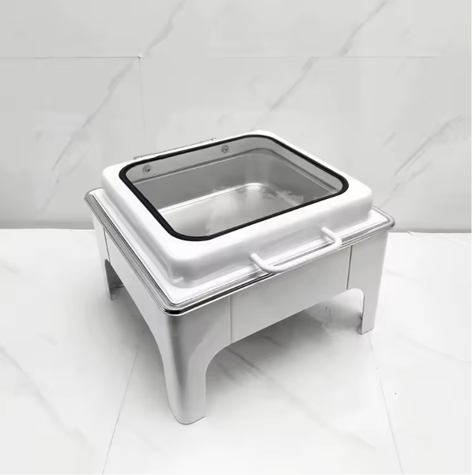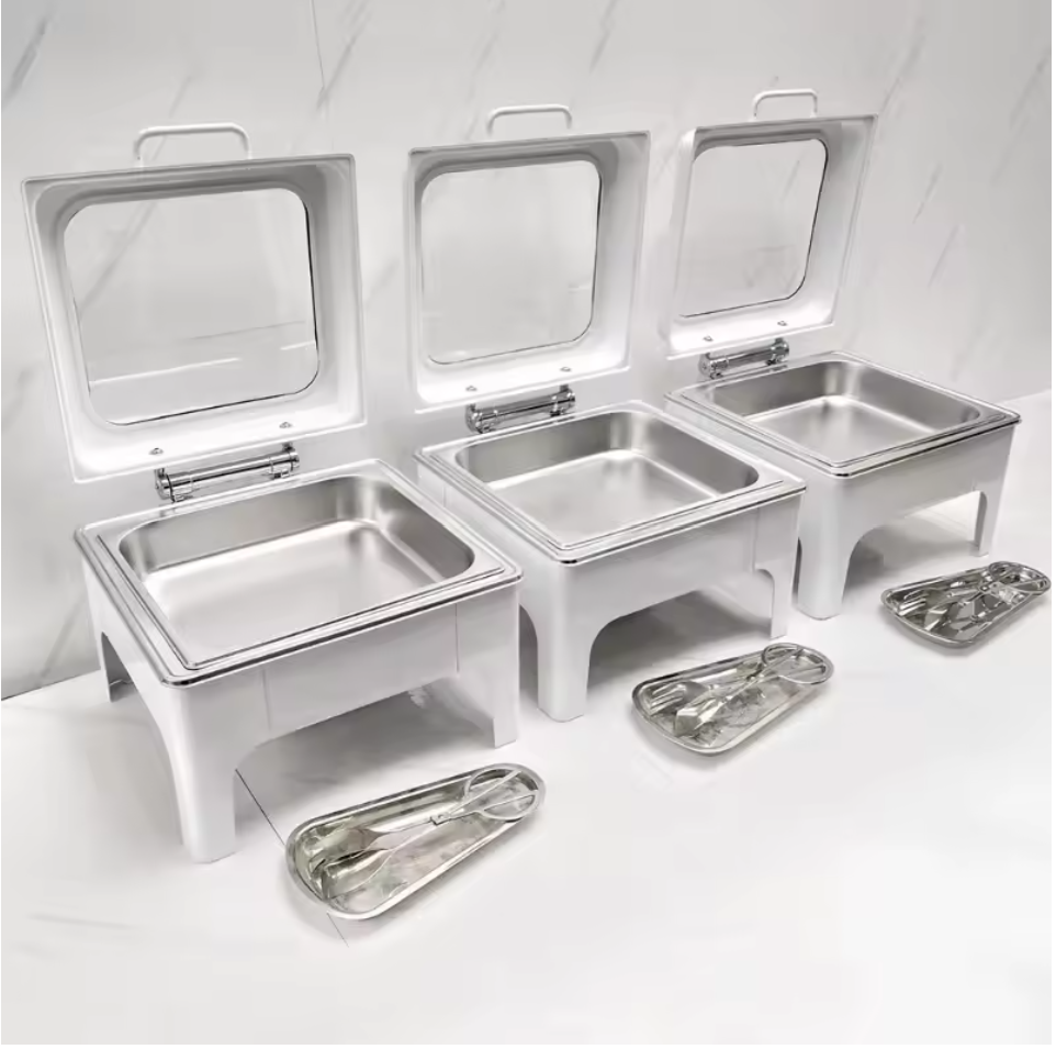 Square Stainless Steel 9L Food Warmer White Chafing Dish Buffet Glass Serving Dishes for Sale
