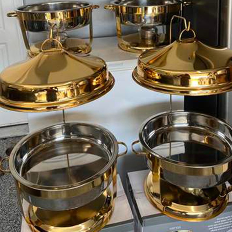 Stainless Steel Gold and Silver Hanging Roll-Top Hammered Chaffing Dishes 9l