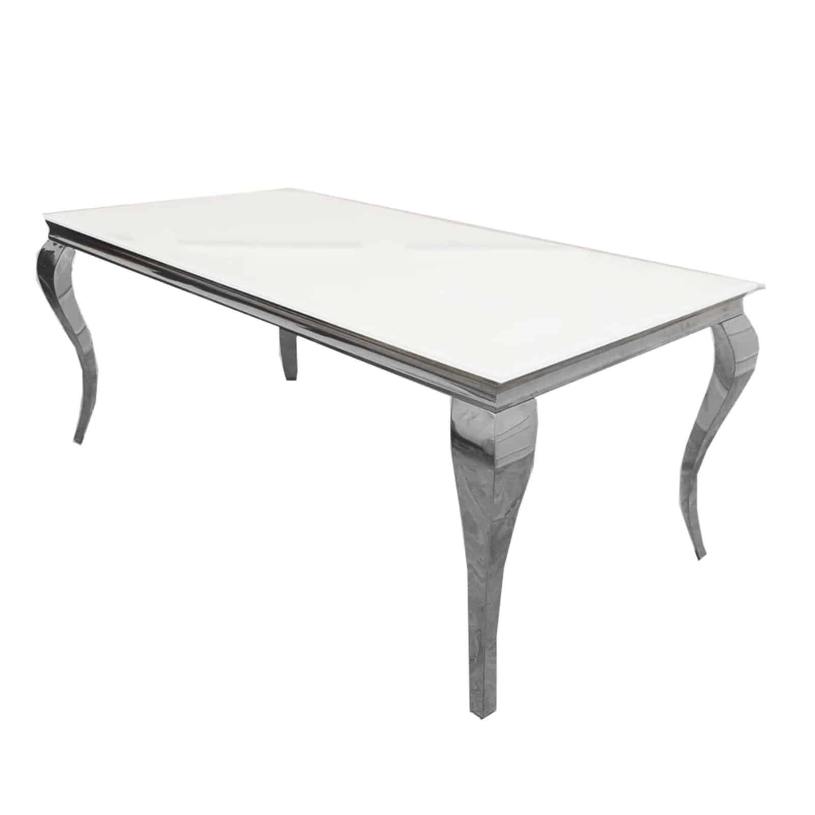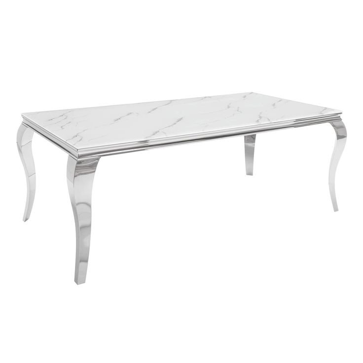 Stainless Steel Silver and White 70-Inch Faux marble Dining Table